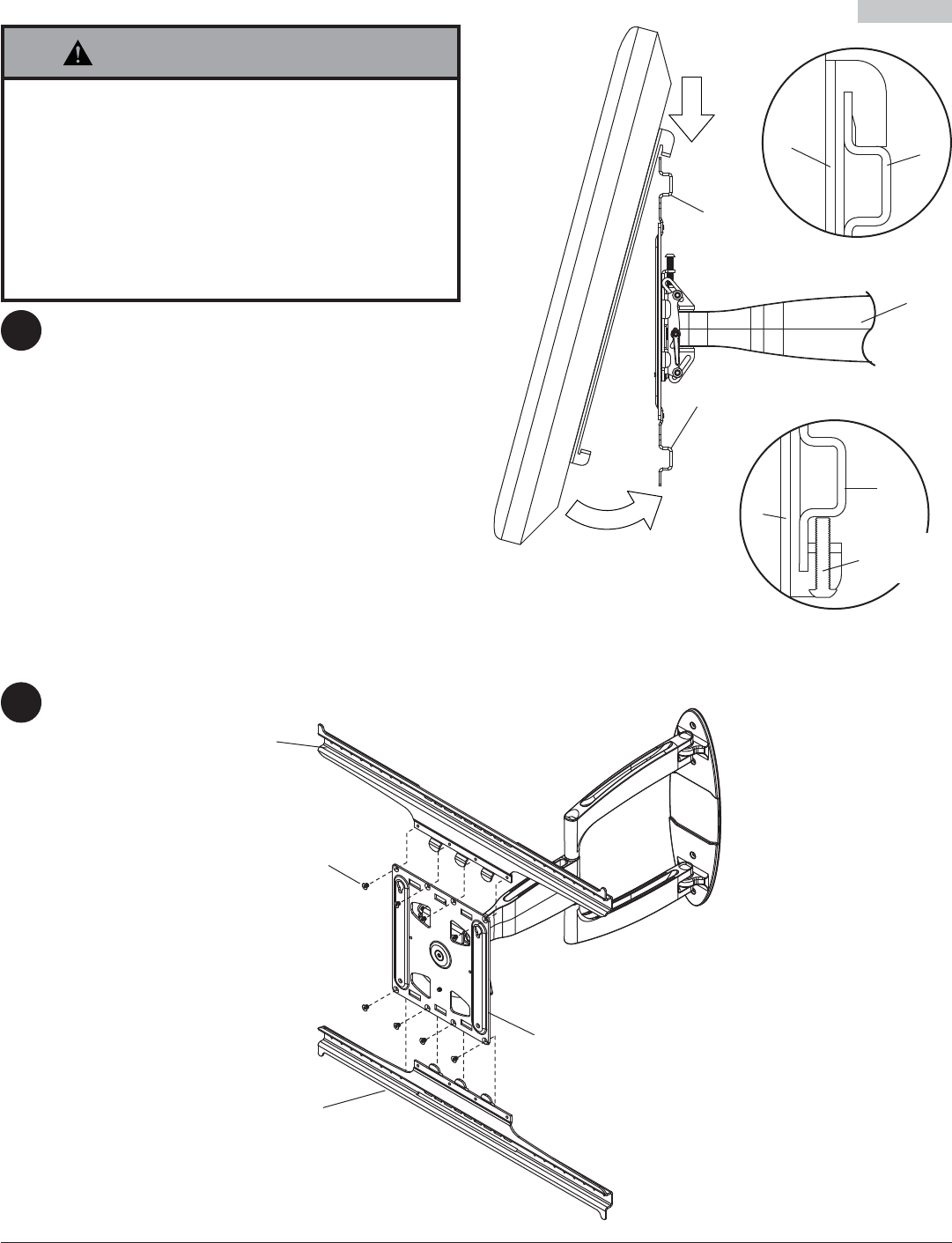 Montage de l’écran: Accrochez lentement les