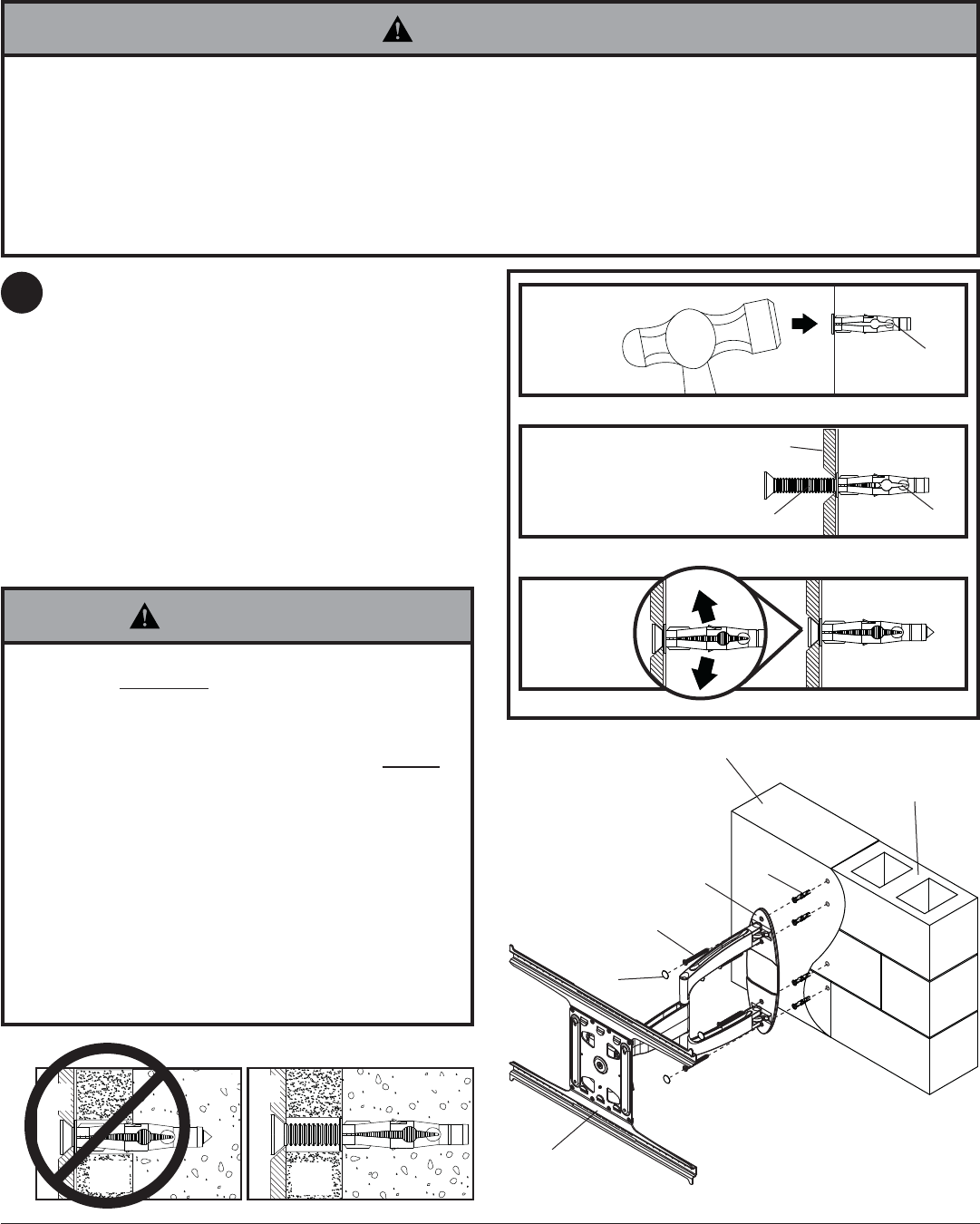 • Never attach concrete expansion anchors to